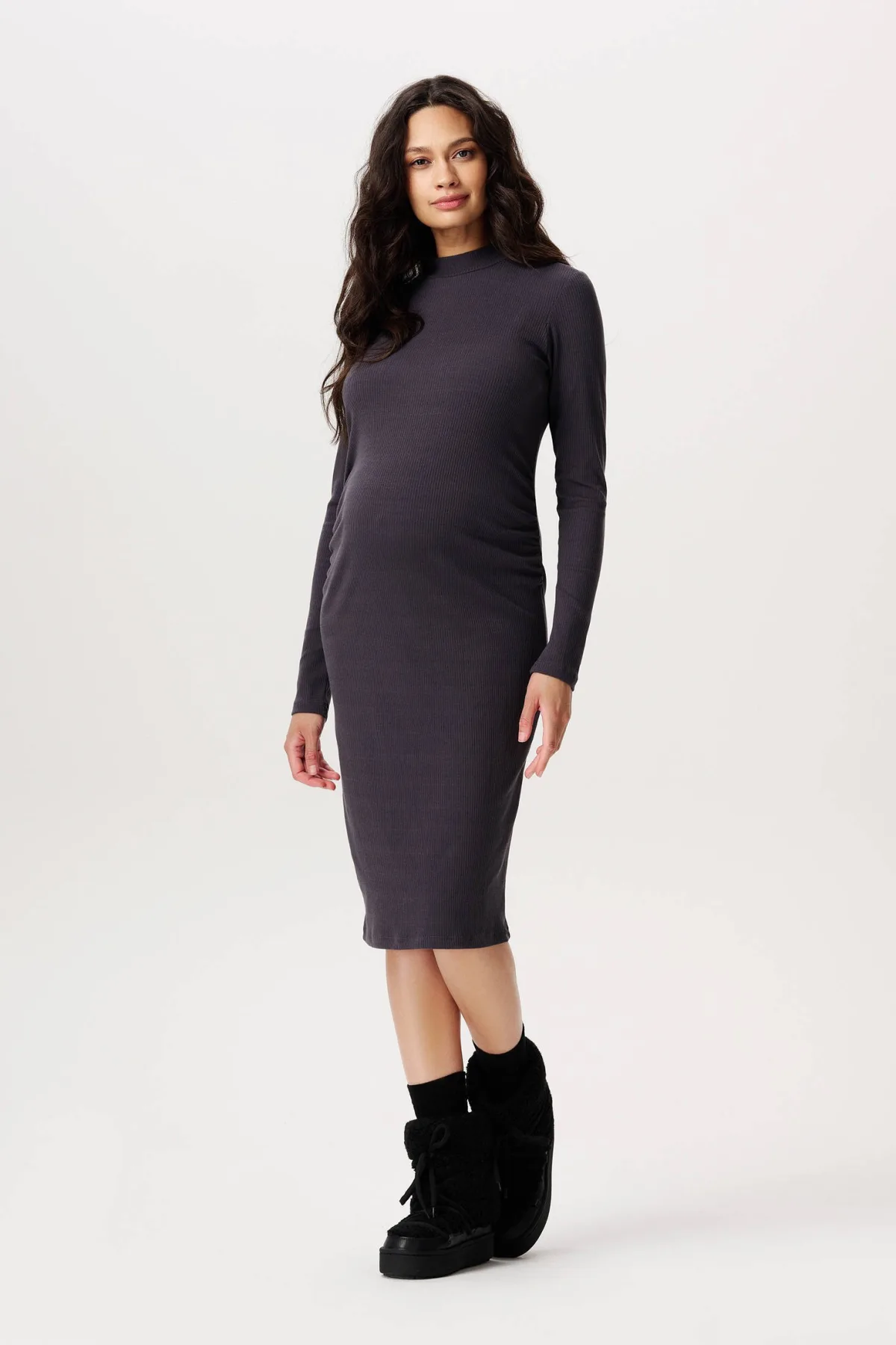 Noppies maternity ribgebreide zwangerschapsjurk Aima grijs