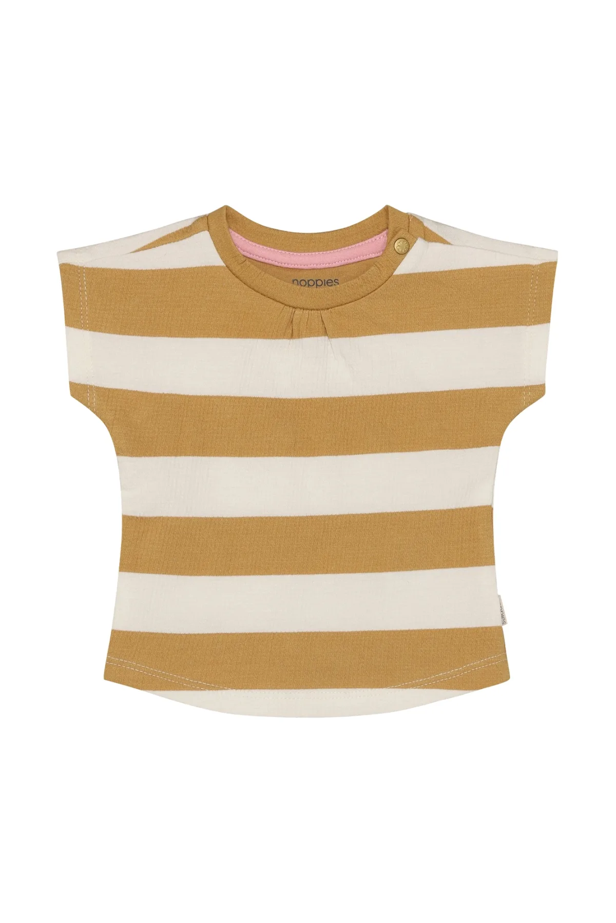- Bij wehkamp.nl kun je Noppies baby gestreepte T-shirt lichtbruin kopen voor slechts €15,00 , dat is 30% goedkoper dan bij Bol (€21,50).
