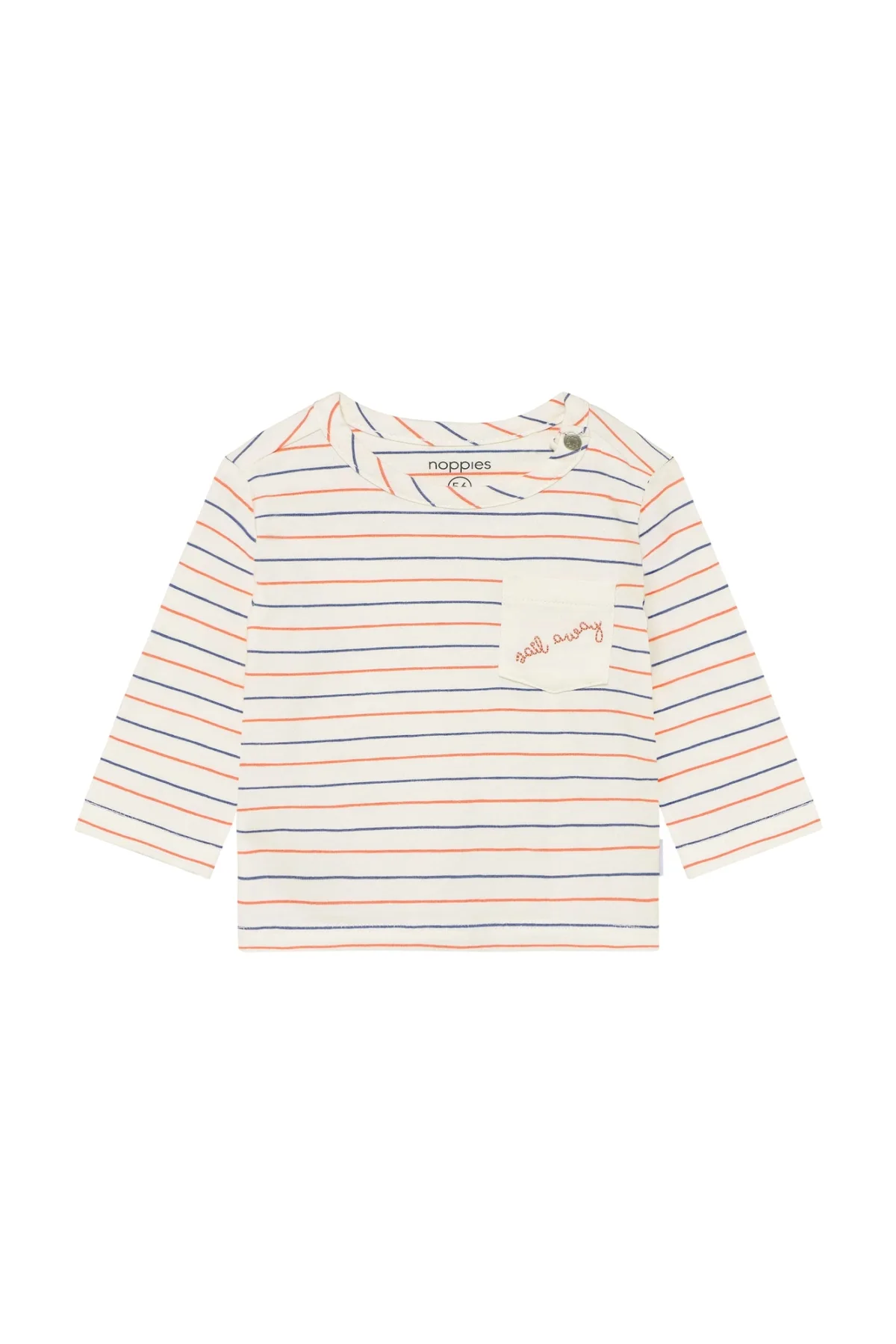 Deze comfortabele Noppies baby longsleeve voor jongens is een praktische basic voor elke dag. De top heeft een speelse streepprint en een ronde hals, waardoor de longsleeve makkelijk te combineren is met een broekje, jogger of tuinbroek. Dankzij de lange mouwen is je kleintje goed bedekt en blijft het lijfje goed warm, zowel binnen als buiten.Zachte basic met handige details Gemaakt van 95% katoen en 5% elastaan voor een zachte stof die soepel met je baby meebeweegt Stretchkatoen is zacht voor de gevoelige babyhuid Drukknoopsluiting maakt aan- en uitkleden eenvoudiger Ronde hals voor een comfortabele pasvorm rond de nek Streepprint geeft een tijdloze, speelse uitstraling Geen zakken voor een rustige look en extra draagcomfortIdeaal voor dagelijks gebruikDeze longsleeve is geschikt voor alledaags gebruik, van thuis op de bank tot de kinderwagen of een bezoekje aan de opvang. De stof biedt voldoende bewegingsvrijheid, zodat je baby ongestoord kan rollen, kruipen en spelen.Noppies baby: aandacht voor de allerkleinstenNoppies baby staat bekend om kleding die is afgestemd op het leven met een pasgeboren kindje. De pasvormen zijn doordacht, de stoffen voelen zacht aan en de details zijn praktisch in gebruik. Zo wordt elke dag met je kleintje net even eenvoudiger.Een praktische longsleeve als vertrouwde basis in de kledingkast van je babyjongen.