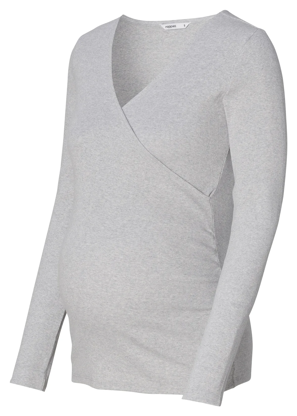 Design: Wikkel-look; Materiaal: Jersey; Halstype: V-hals; Motief: Mélange; Details: Gedrapeerd; Extra's: Voelt zacht aan; Borstvoedingsfunctie: Met borstvoedingsfunctie; Pasvorm: Slanke pasvorm; Armlengte: Lange mouw; Lengte: Normale lengte