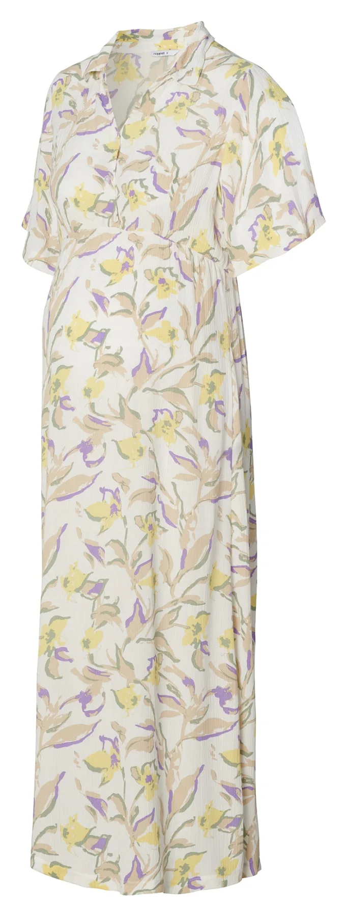 Type sluiting: Knoopsluiting; Materiaal: Viscose; Halstype: Opstaande kraag; Motief: Bloemenprint; Borstvoedingsfunctie: Met borstvoedingsfunctie; Lengte: Lang/maxi; Snit: Getailleerd; Pasvorm: Normale pasvorm; Armlengte: Halve mouw