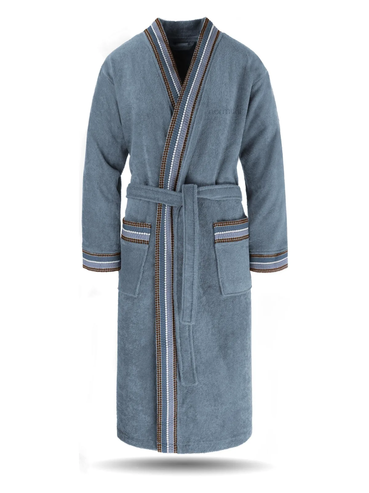 normani Badjas lang duifblauw / bruin / wit Prijzen
