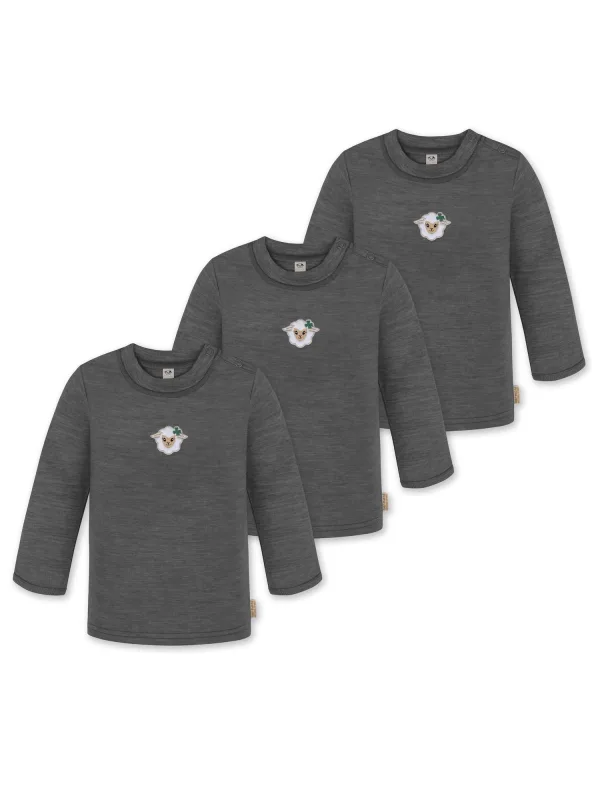 Design: Gevoerde zoom/rand; Type sluiting: Drukknoop; Materiaal: Jersey; Halstype: Ronde hals; Motief: Mélange; Details: Patches; Extra's: Voelt zacht aan; Pasvorm: Normale pasvorm; Aantal: 3 Pack; Armlengte: Lange mouw; Lengte: Normale lengte