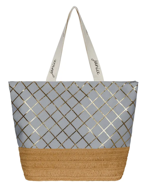 Specificaties: normani Strandtas ‘Kuredu’ beige / goud / grijs