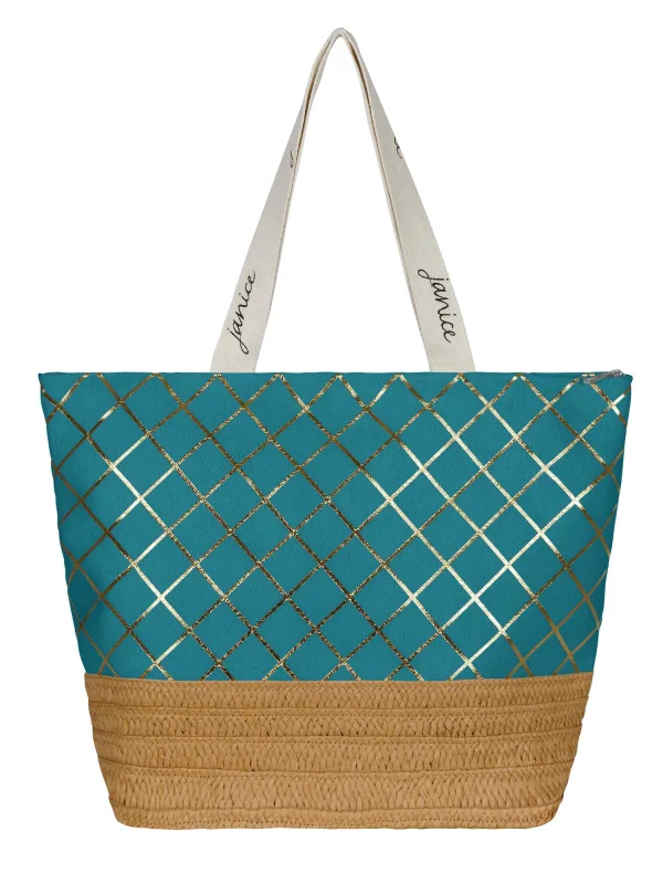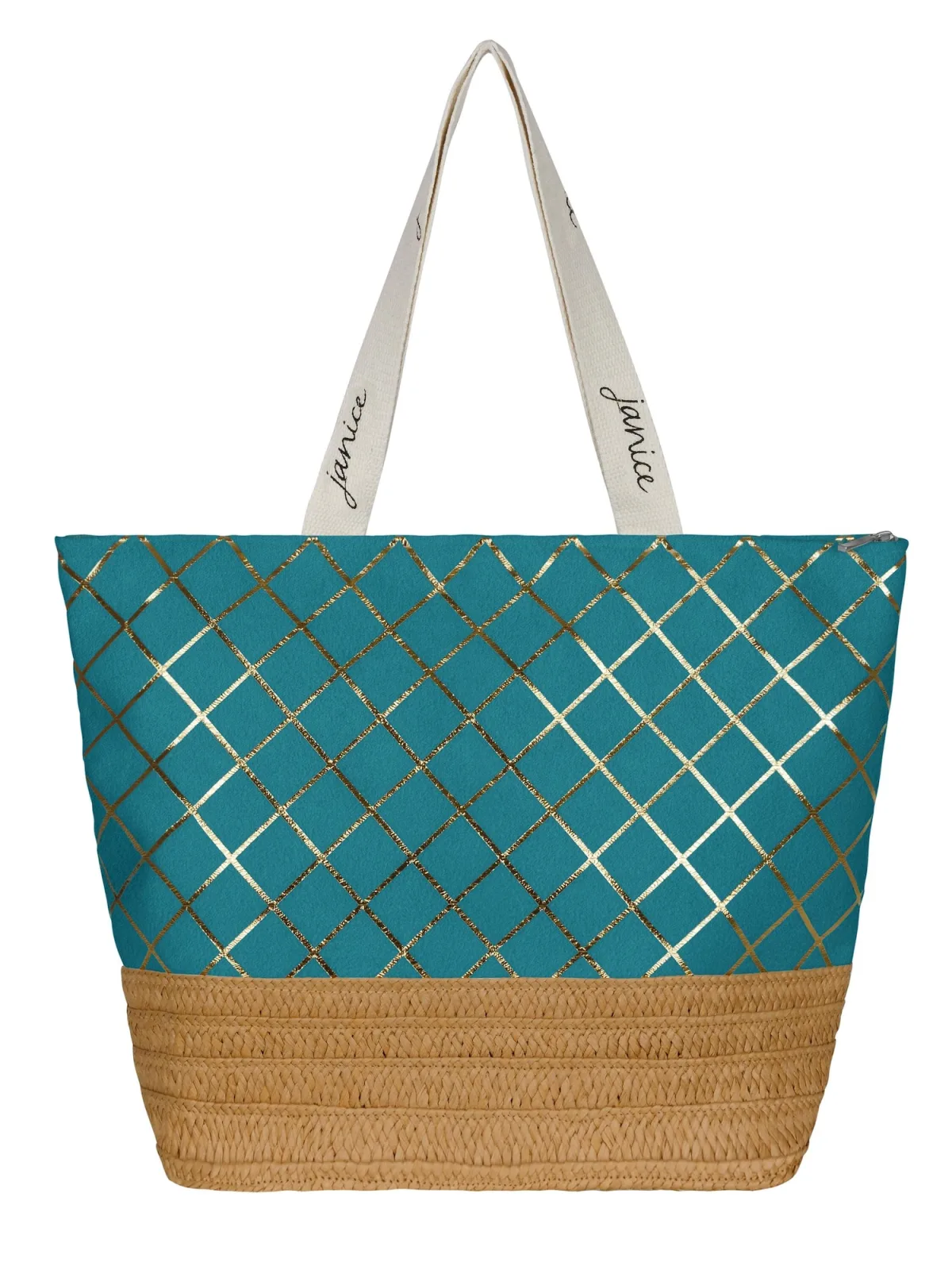 Specificaties: normani Strandtas ‘Kuredu’ lichtbeige / pastelblauw / goud / wit