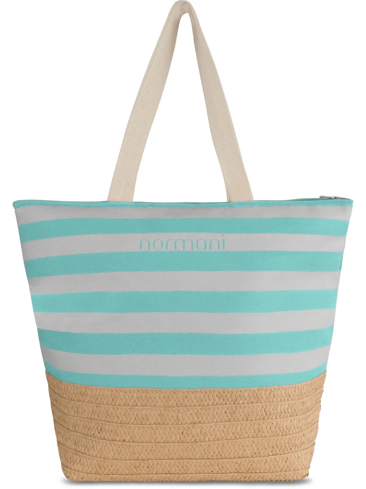 Specificaties: normani Strandtas ‘Mackay’ beige / lichtgrijs / mintgroen