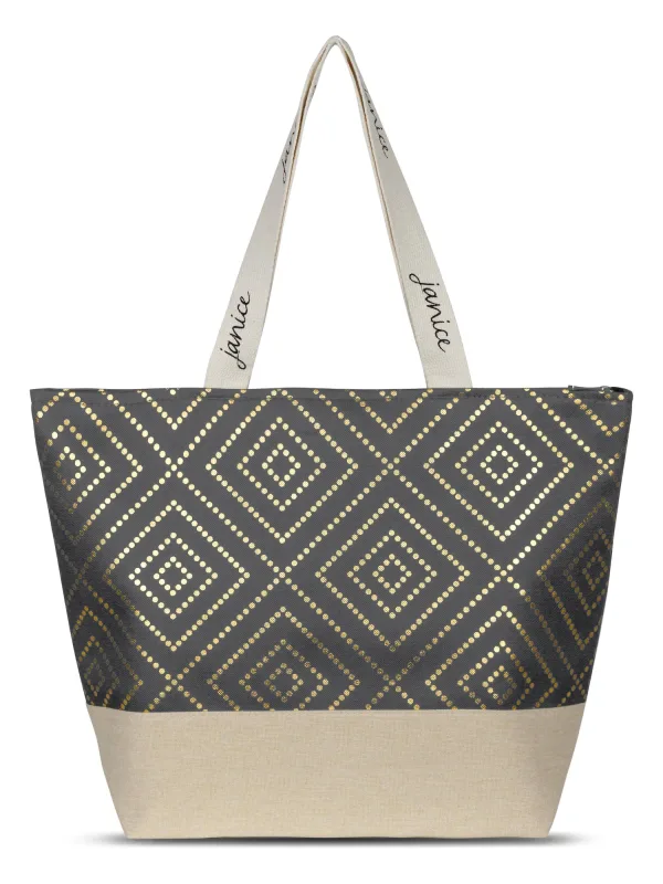 Specificaties: normani Strandtas ‘Nika’ beige / goud / antraciet