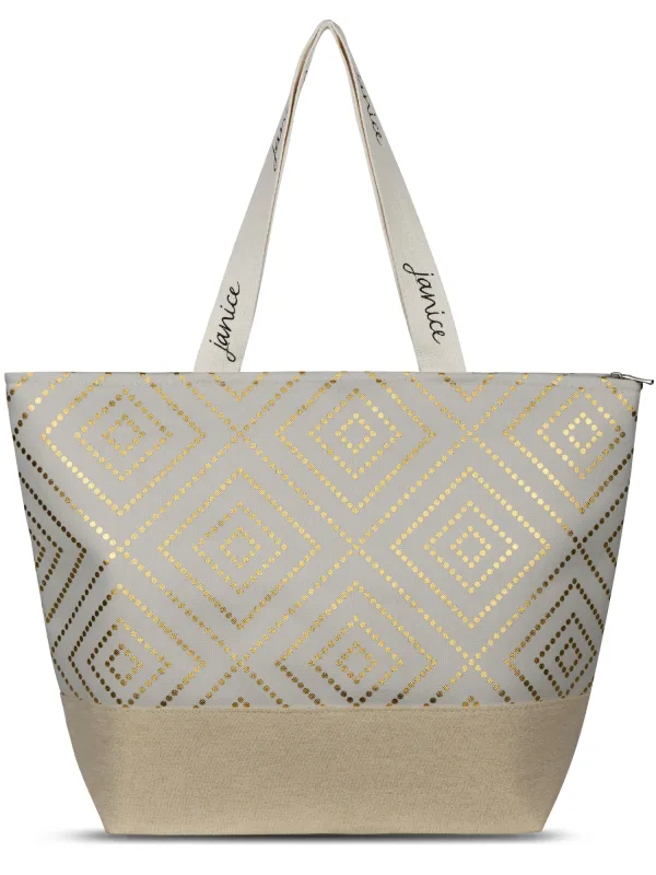 Specificaties: normani Strandtas ‘Nika’ sand / goud / offwhite