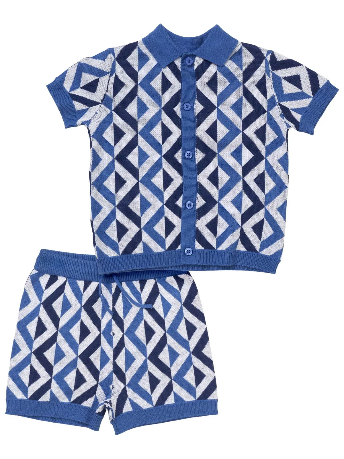 Design: Geribbelde kraag; Type sluiting: Knoopsluiting; Materiaal: Knitwear; Extra's: All-over patroon; Aantal per set: 2-delig; Lengte: Knielengte; Setinhalt Kleidung: Strickjacke, Hose; Pasvorm: Normale pasvorm; Armlengte: Kwartmouw