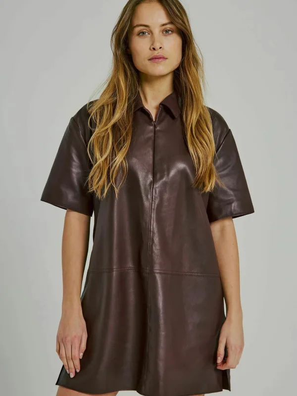 Materiaal: Leer; Motief: Effen; Extra's: Op staal naden; Lengte: Kort/mini; Pasvorm: Normale pasvorm; Armlengte: Halve mouw