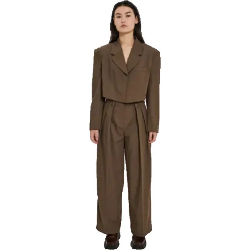 Pantalon met wijde pijpen van het merk NORR. Combineer de broek met de kamin blazer voor een matchende look. Stofsamenstelling: 90% polyester, 6% viscose, 4% elastaan. Pasvorm: valt normaal. Twijfel je over de maat? Neem contact met ons op en we helpen je graag verder!
