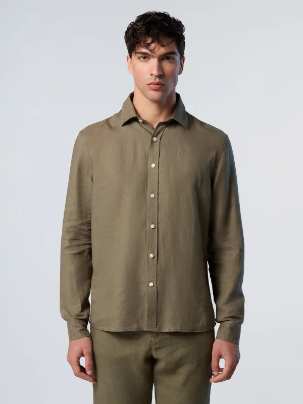 North Sails Overhemd Linnen met geborduurd logo