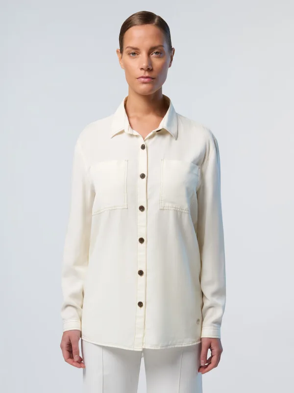 Veelzijdige vrijetijdsstijl met een lichter gevoel en een lichtere voetafdruk. Dit shirt is gemaakt van TENCEL:™ een natuurlijk ademende, plantaardige vezel gemaakt van duurzaam geproduceerde houtpulp. Gestyled met maxi opgestikte zakken op de borst en imitatiehoorn knopen.