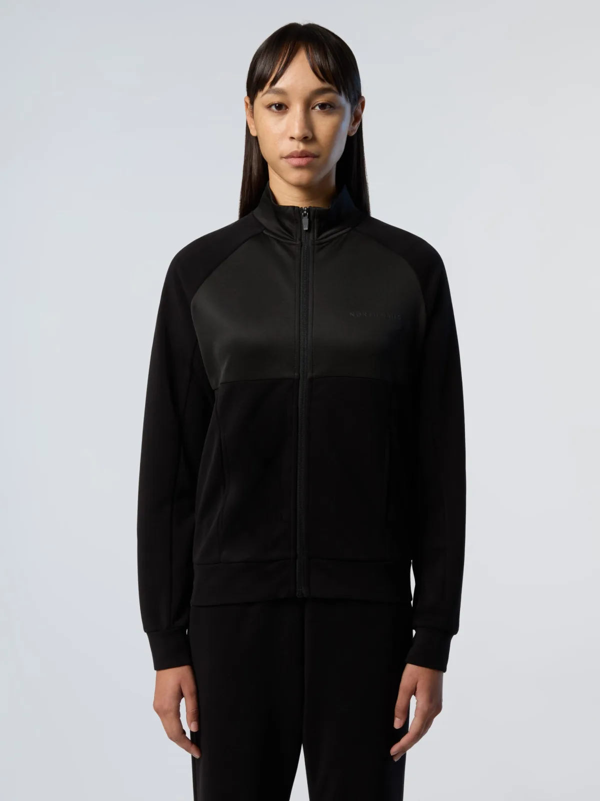 Strak, stijlvol en klaar voor avontuur. Dit sweatshirt met volledige rits is gemaakt van een mix van modal fleece met een subtiele glans, verhoogd met binnenstebuiten gekeerde panelen op de borst en op de rug. Een opstaande kraag, raglanmouwen en gestroomlijnde panelen zorgen voor een supergebeeldhouwd silhouet.