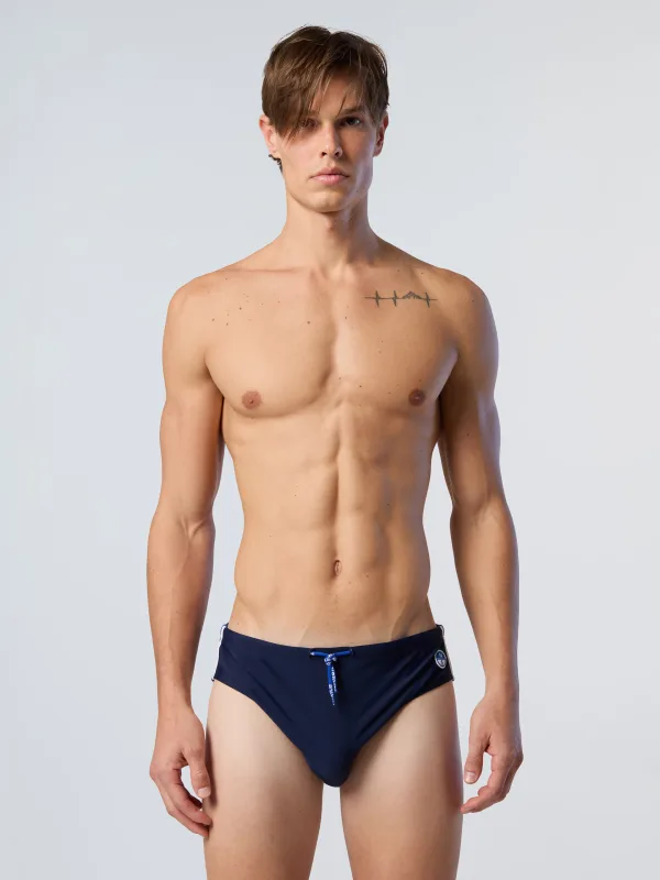 Een gestroomlijnd ontwerp voor enthousiaste zwemmers. Deze elastische LYCRA® zwemslip is gemaakt van gerecycled nylon, waardoor er minder afval naar de vuilstort gaat. Verheven met sportieve strepen aan de zijkant, een trekkoord met merknaam en een logopatch als teken van onmiskenbare North Sails-stijl.