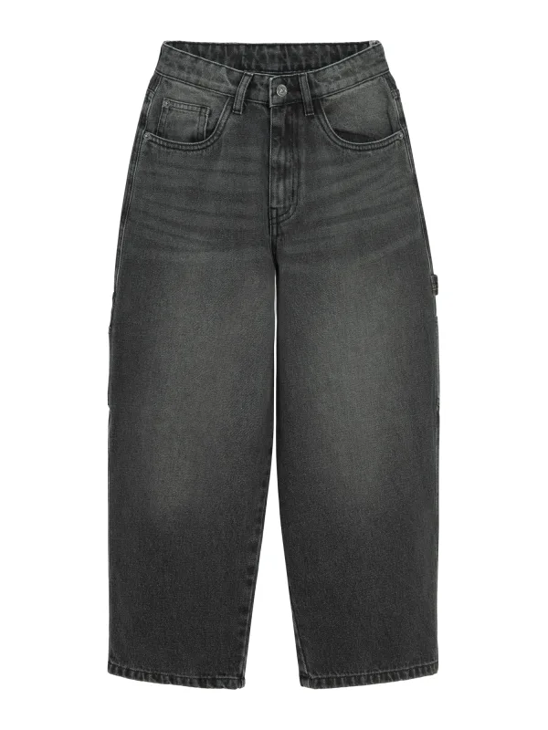 Design: Gevoerde zoom/rand, Ritssluiting, 5-pocket-style, Opgezette zakken; Type sluiting: Knoopsluiting; Materiaal: Denim; Motief: Effen; Extra's: Studs, Label patch/label flag, Used-look, Riemlussen; Wassing: Rinsed/dark washed; Lengte: Lang/maxi; Pasvorm: Baggy; Taillehoogte: Mid waist