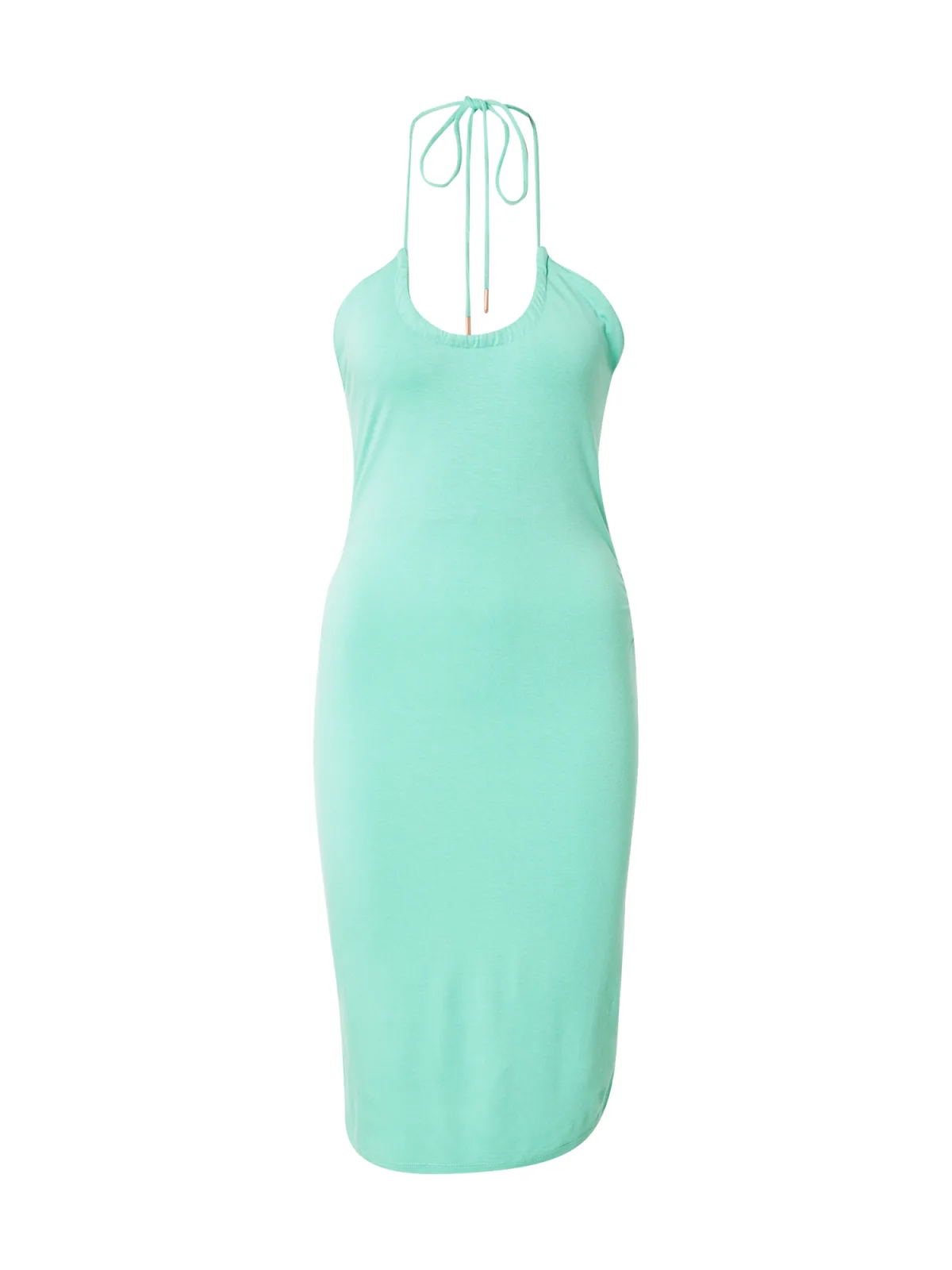 Design: Gevoerde zoom/rand, Met band/snoer, Om te knopen/binden; Materiaal: Viscose; Halstype: Ronde hals; Motief: Effen; Soort bandjes: Haltermodel; Details: Gedrapeerd, Backless; Extra's: Op staal naden, Voelt zacht aan; Lengte: Knielengte; Pasvorm: Aansluitende pasvorm; Armlengte: Mouwloos