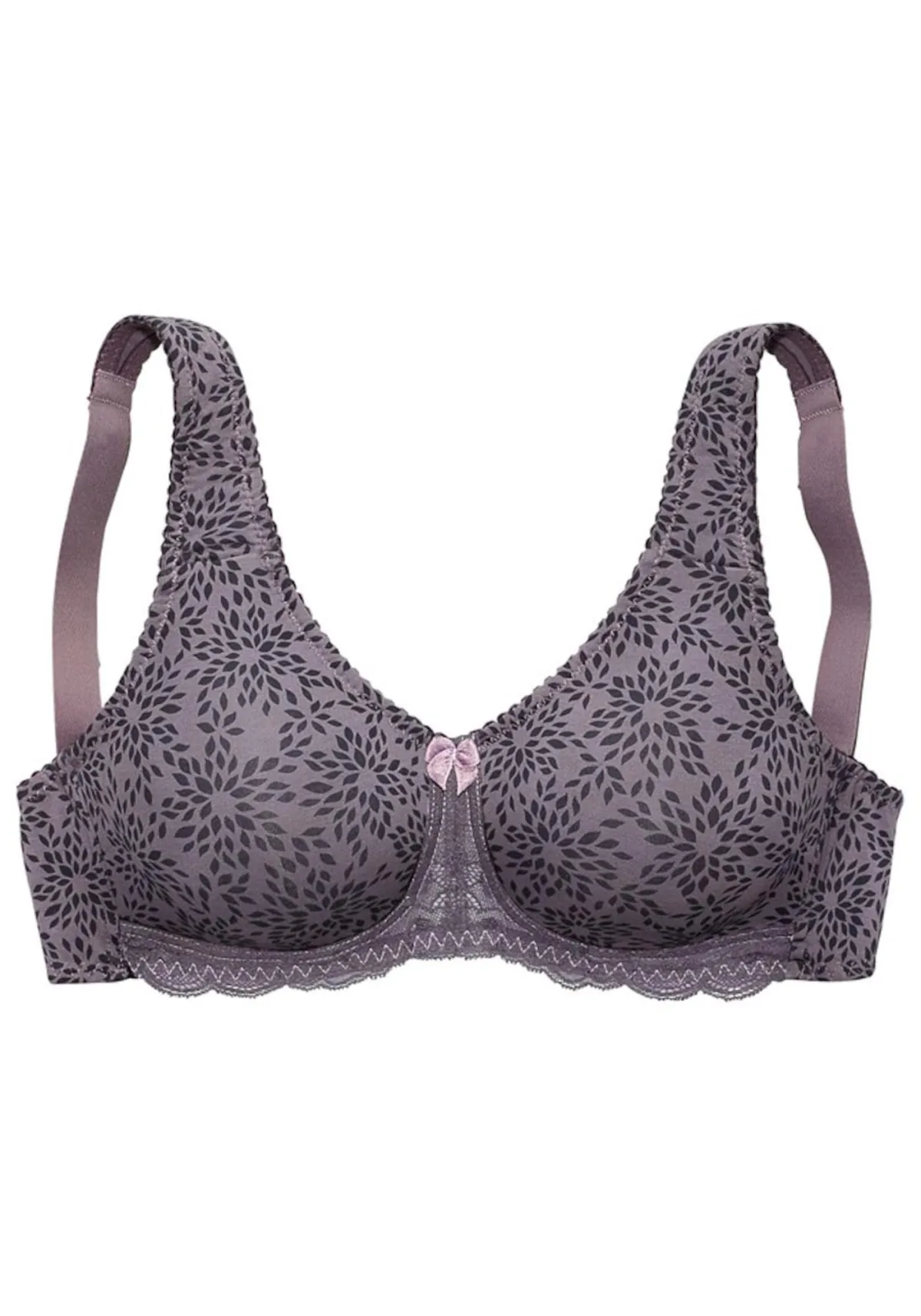 Cup soorten: Full cup bh; Soort bandjes: Normale bandjes; Bh/bikini type: Minimizer; Beugel: Zonder beugel; Type sluiting: Haakjes; Materiaal: Katoen; Motief: Bloemenprint; Details: Kant; Extra's: Verstelbare bandjes, All-over patroon, Voelt zacht aan; Pasvorm: Regular; Taillehoogte: Mid waist