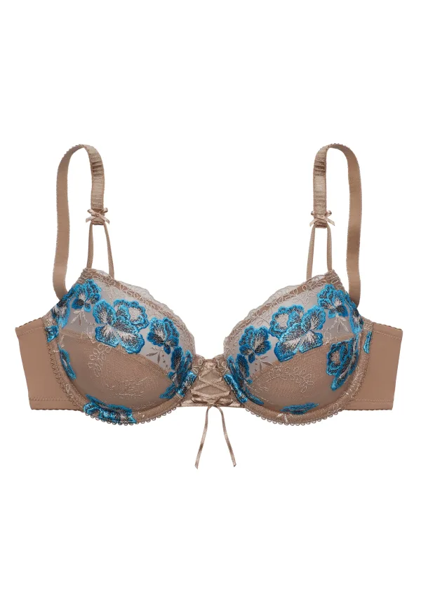 Cup soorten: Soft cup bh; Soort bandjes: Normale bandjes; Bh/bikini type: T-shirt; Beugel: Met beugel; Motief: Bloemenprint; Details: Kant; Extra's: Verstelbare bandjes, Applicaties
