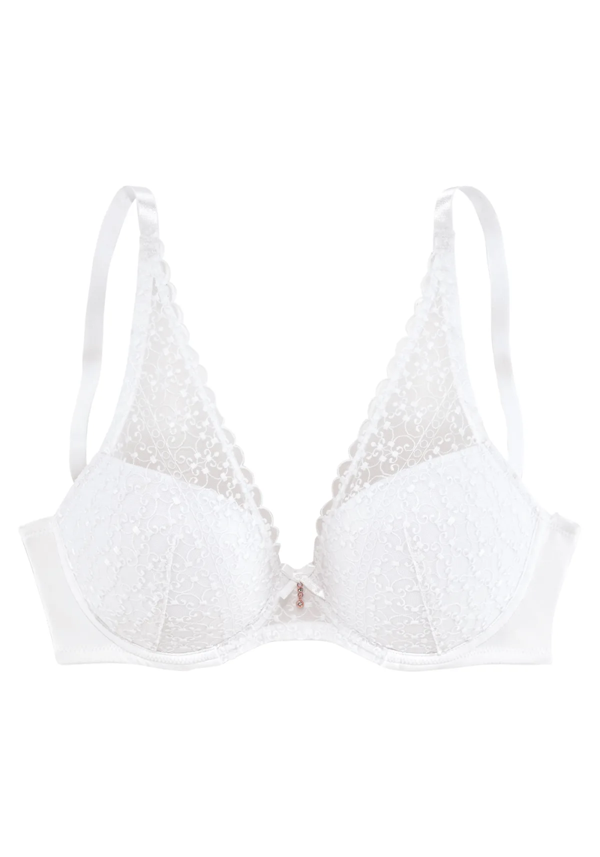 Cup soorten: Soft cup bh; Soort bandjes: Normale bandjes; Bh/bikini type: Triangel; Beugel: Met beugel; Type sluiting: Haakjes; Motief: Effen; Details: Kant, Sierstenen; Extra's: Licht transparant, Op staal naden, Met textuur