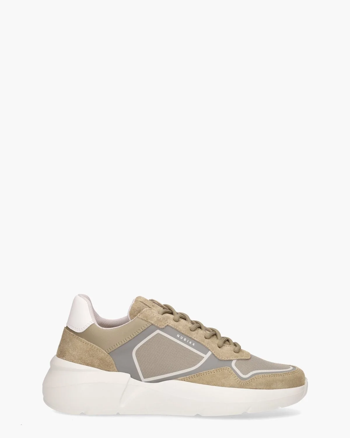 Met de lage sneakers Roque Road Curl 21080400-23X maak je goede sier. Deze NUBIKK herenschoenen zijn vervaardigd uit suède, leer en geweven mesh, waardoor ze zowel stijl als klasse uitstralen. De grijze details opzij en de witte leren hielcap vormen een mooi contrast met het taupekleurig suède. Binnenin biedt het gebruik van textiel ultiem