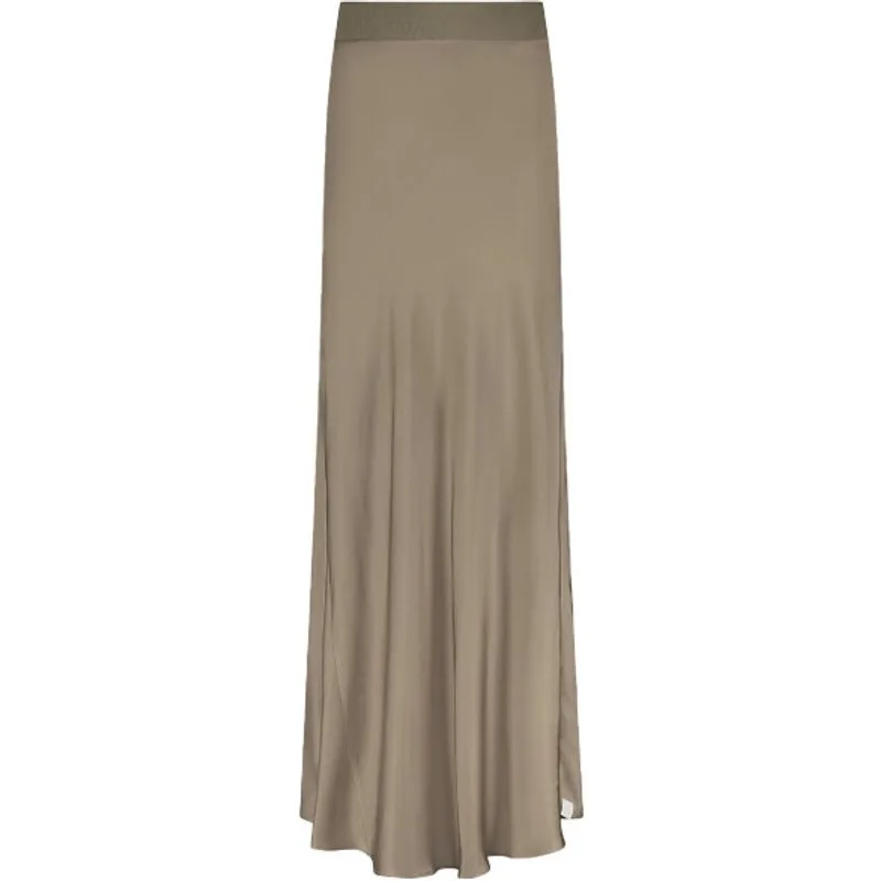 De Sasha skirt (FW24077) van NUKUS is een lange rok met een elastische tailelband en een losvallende pasvorm. Deze rok is gemaakt met een satijnen effect en uitgevoerd in de kleur Brown.De stof is gemaakt van viscose en rayon.