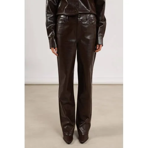 NUKUS imitatieleren straight high waist broek donkerbruin