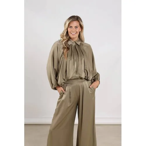 De NUKUS dames jas Jolijn in lichtkaki is een licht en vrouwelijk jasje, ideaal voor het tussenseizoen. De subtiele glans in de stof en de geplooide details geven een verfijnde uitstraling, terwijl de rechte snit rustig oogt. Dankzij de lange mouwen en klassieke kraag biedt dit jasje net dat beetje extra warmte op frisse lentedagen, zonder zwaar aan te voelen.Licht jasje met verfijnde details Lichtkaki kleur die makkelijk combineert met zowel lichte als donkere tinten Lange mouwen voor extra bedekking op koelere momenten Ritssluiting aan de voorzijde, snel aan en uit te trekken Klassieke kraag voor een verzorgde, tijdloze look Glimmende accenten en plooien voor een subtiel speels effect Gebaseerd op standaardmaten voor een vertrouwde pasvorm Zonder zakken, waardoor het silhouet strak en clean blijftPerfect voor lichte lenteoutfitsDit jasje is gemaakt voor de lente en voor dagen waarop je laagjes draagt. Over een T-shirt of dunne trui geeft het net genoeg warmte tijdens een wandeling, een lunchafspraak of een dagje in de stad. De lichtkaki kleur past moeiteloos bij jeans, een nette broek of een luchtige jurk.NUKUS, eigentijdse mode met aandachtNUKUS staat voor moderne damesmode met oog voor detail. De collecties worden ontworpen met aandacht voor draagbaarheid, actuele kleuren en subtiele accenten. Zo biedt NUKUS kleding die prettig in het dagelijks leven past en toch verzorgd oogt.Een licht jasje dat jouw lenteoutfits rustig, stijlvol en doordacht afmaakt.