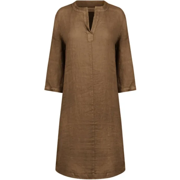 De Kate Dress Mix is de perfecte jurk voor de warme dagen die voor de deur staan. Gemaakt van 95% Katoen, 5% Elastane biedt deze jurk een heerlijk luchtig en ademend gevoel, waardoor hij ideaal is voor zowel casual als speciale gelegenheden. De achterkant is gemaakt van jersey. Het vrouwelijke ontwerp wordt versterkt door de kleine V-hals, die subtiel een elegante uitstraling geeft. De iets wijder vallende pasvorm zorgt voor ultiem comfort en bewegingsvrijheid. Of je nu kiest voor een relaxte look met sneakers of de jurk wilt stylen voor een feestelijke gelegenheid met een paar hakken, de Kate Dress Mix is altijd een goede keuze. Kleur: Fango Materiaal: 100% Linnen