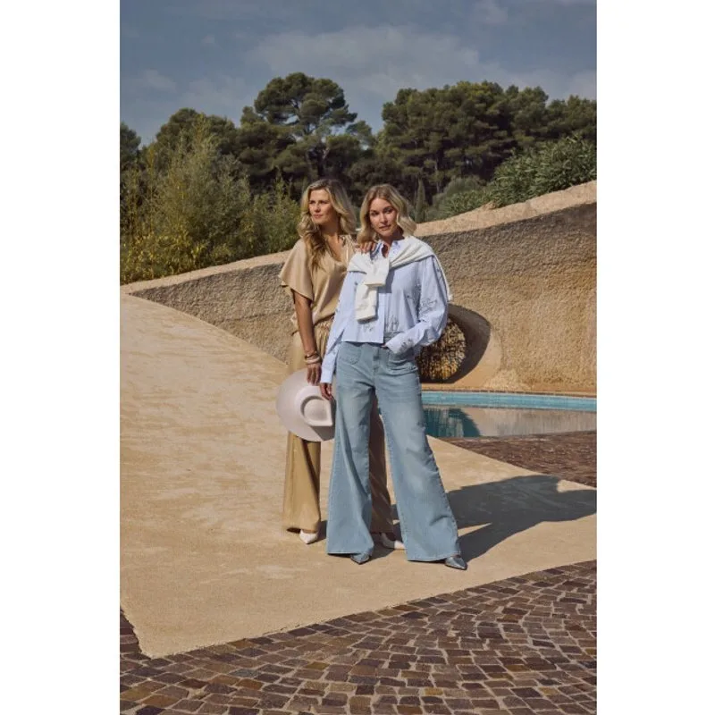 Deze lichtblauwe flared jeans voor dames van NUKUS is een fijne basis voor je dagelijkse garderobe. De hoge taille, het lichte denim en de uitlopende pijpen laten je benen optisch langer lijken en geven een modern, vrouwelijk silhouet. Dankzij de zachte denimkwaliteit met een beetje stretch beweeg je makkelijk mee, of je nu aan het werk bent, de stad in gaat of een lunchafspraak hebt.Details die je elke dag draagt Flared model met uitlopende pijpen voor een elegante, lange lijn Hoge taille (high waist) voor een comfortabele en aansluitende pasvorm rond je middel Gemaakt van 97% katoen / 3% elastaan voor een zachte touch en lichte stretch Lichtblauwe kleur, makkelijk te combineren met zowel basic T-shirts als nette blouses 5-pocket model met riemlussen en rits- en knoopsluiting Lang model, ideaal in combinatie met sneakers, laarsjes of een hak Effen denim zonder slijtage details voor een rustige, tijdloze uitstralingStyling voor elke dagDeze NUKUS flared jeans past makkelijk in verschillende outfits. Combineer met een eenvoudige top en sneakers voor een ontspannen dag, of draag een blouse met laarsjes voor een nettere look. De hoge taille sluit mooi aan, waardoor tops er zowel ingestopt als los overheen goed bij staan.NUKUS: moderne stijl met oog voor detailNUKUS ontwerpt kleding met een moderne, vrouwelijke uitstraling en aandacht voor pasvorm en draaggemak. De collectie is afgestemd op het dagelijks leven, met items die onderling goed te combineren zijn. Zo stel je in korte tijd een garderobe samen die stijlvol, actueel en praktisch is.Een veelzijdige jeans die je het hele seizoen door graag uit de kast pakt.