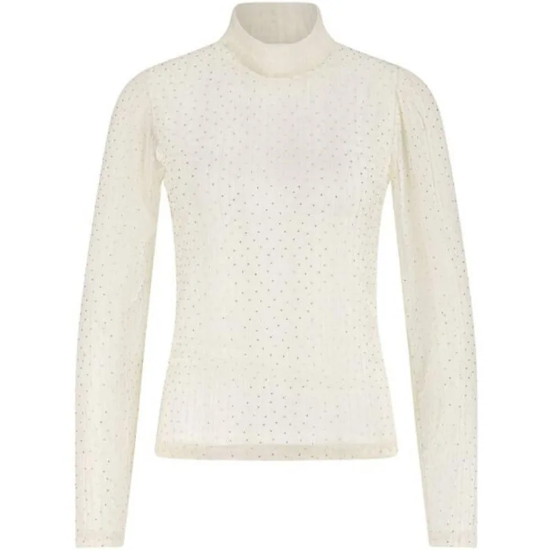Stralend en vrouwelijk – dat is de Puck Top Strass (NKF01001) van NUKUS. Deze verfijnde offwhite strass top is een echte eyecatcher door de transparante mouwen met elegante glinstering. De subtiele strass steentjes geven de top een feestelijke uitstraling, terwijl de elastische zoom zorgt voor een comfortabele en flatterende pasvorm. Combineer deze top moeiteloos met de Hella Pants Lurex (NKF09021) voor een chique avondlook of draag haar casual met jeans. Een veelzijdig item dat elegantie en comfort samenbrengt in één ontwerp.Productspecificaties:- Kleur: Offwhite- Pasvorm: Losvallend met elastische boord- Mouiwen: Transparant met strass details- Hals: Ronde Hals,- Materiaal: Polyester