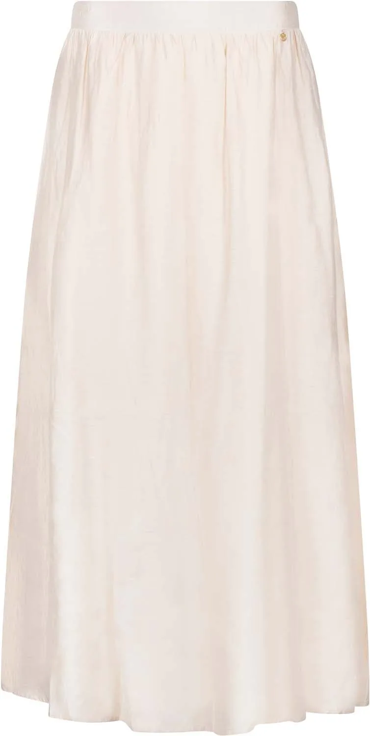 Rok Floortje van Nukus is een maxi rok in een effen, lichte tint met minimalistische uitstraling. De elastische taille zit comfortabel en de soepel vallende stof beweegt makkelijk mee. Draag met een ingestopte blouse en sandalen voor een casual, verzorgde set.