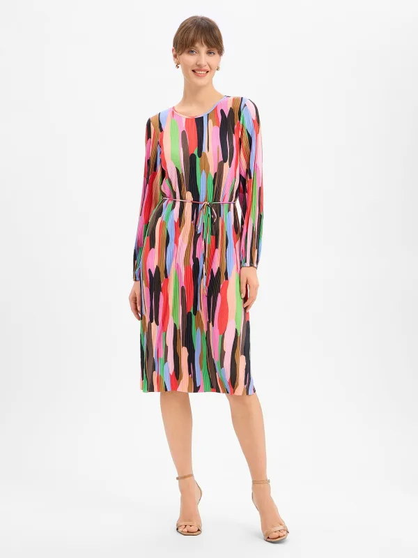 Design: Keyholesluiting, Met band/snoer; Type sluiting: Knoopsluiting; Halstype: Ronde hals; Details: Gedrapeerd, Plissé; Extra's: All-over patroon; Lengte: Knielengte; Snit: Getailleerd; Pasvorm: Normale pasvorm; Armlengte: Lange mouw