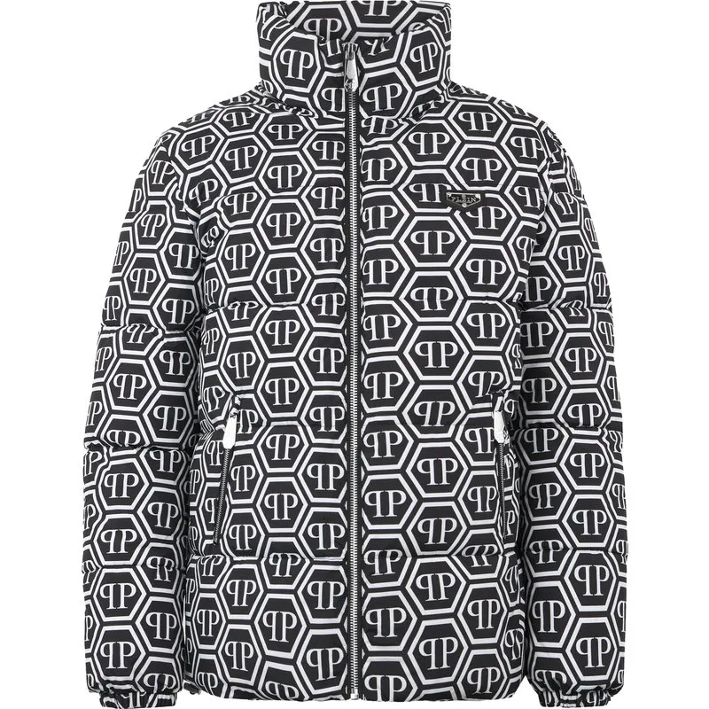 Dit geraffineerde pufferjack geeft een modern statement aan de alledaagse styling en combineert een gedurfd silhouet met het kenmerkende monogram voor een verhoogde urban look. Leg het over casual of op maat gemaakte stukken voor een zelfverzekerde, eersteklas afwerking. Monogrampatroon voegt kenmerkende merkidentiteit toe Gewatteerde structuur biedt volume en aanwezigheid Strakke buitenkant versterkt de eigentijdse uitstraling Opstaande kraag zorgt voor extra vorm en bescherming Veelzijdige buitenlaag geschikt voor impactvolle dagelijkse outfits
