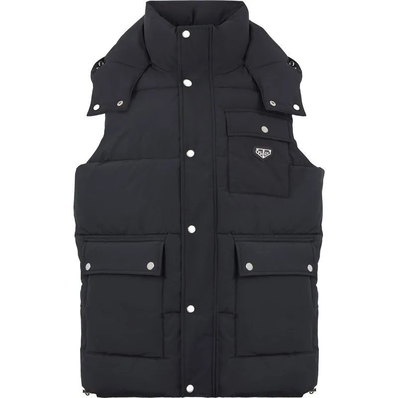 Dit gewaagde puffervest voegt een modern gothic randje toe aan gelaagde looks, perfect om over truien of hoodies te dragen voor een scherp, gestructureerd silhouet. De gestroomlijnde afwerking en kenmerkende details geven een verfijnde look aan alledaagse outfits. Gothic Plein-elementen voegen karakter toe Gewatteerd ontwerp biedt volume zonder bulk Lichtgewicht gevoel ideaal voor gelaagde looks Gestroomlijnde snit verbetert de hedendaagse styling Veelzijdig stuk voor verhoogde casual combinaties