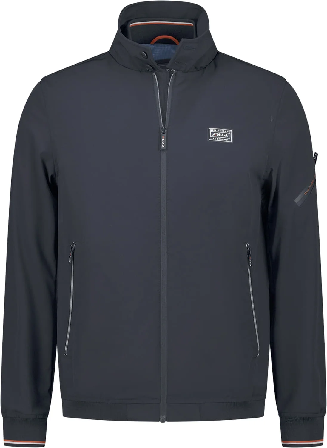 De jas van Nza is een casual heren jas met een opstaande kraag en comfortabele pasvorm. Deze softshell heeft zakken op de voorzijde, lange mouwen met ribgebreide boorden, en een handige ritssluiting. Perfect voor een modieuze en functionele look.