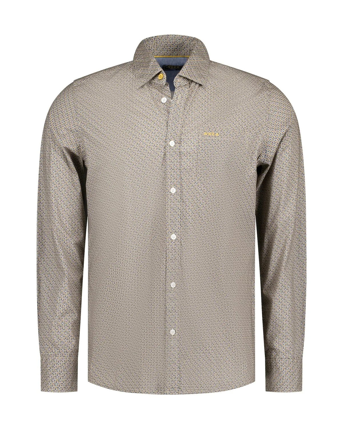 Het Nza overhemd biedt een stijlvol design met een button down kraag en klassieke geweven patroon. Voorzien van lange mouwen met knoopmanchetten en voorzakken, perfect voor een nette gelegenheid. Ideaal voor de modebewuste man die waarde hecht aan kwaliteit en stijl.