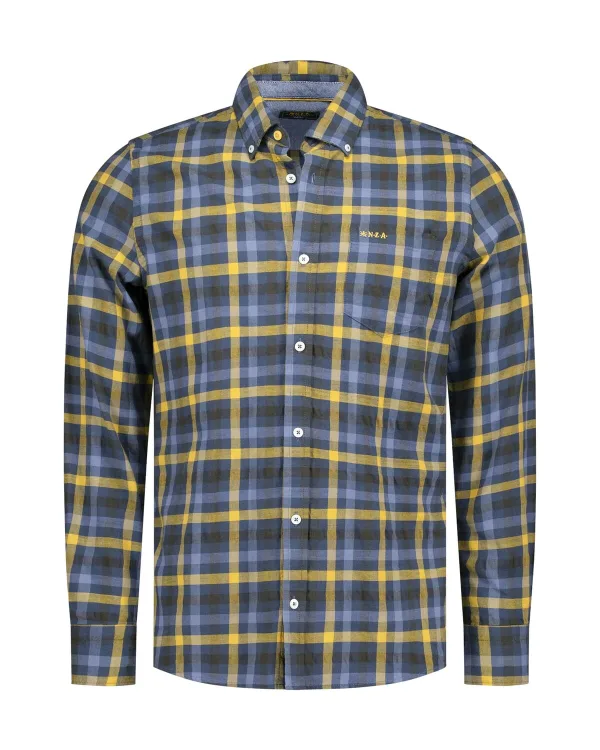 Blauwgeel geruit heren overhemd van New Zealand Auckland met een button-down kraag en handig borstzakje. Modern fit Borstzakje 97% Katoen/ 3% Elasthan Kleurnummer: 2623