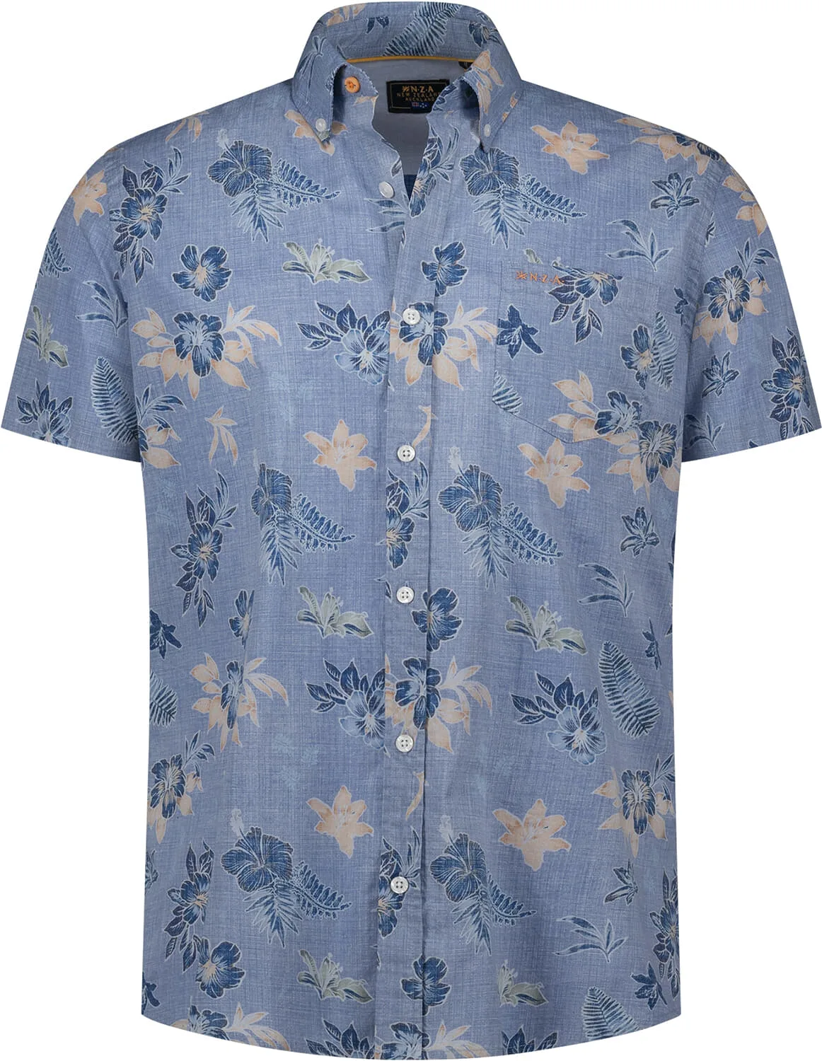 Dit NZA overhemd is een casual heren overhemd met korte mouw en een button down kraag. Het heeft een stijlvol bloemenpatroon en praktische zakken op de voorzijde. De knoopsluiting en manchetten met knopen zorgen voor een tijdloze uitstraling. Perfect voor een trendy en ontspannen gelegenheid.