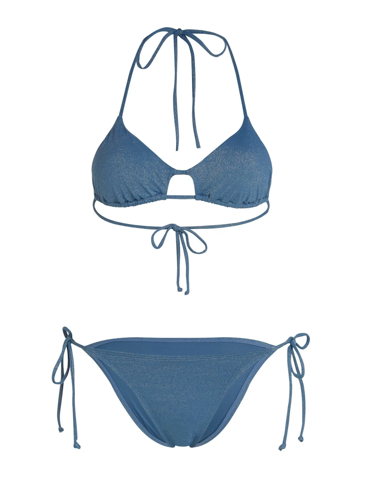 Cup soorten: Uitneembare cups; Soort bandjes: Halterbandjes; Bh/bikini type: Triangel; Beugel: Zonder beugel; Motief: Mélange; Broekvorm: Zijdelings gebonden; Details: Cut-outs, Gedrapeerd; Extra's: Label plaatje, Glitterend