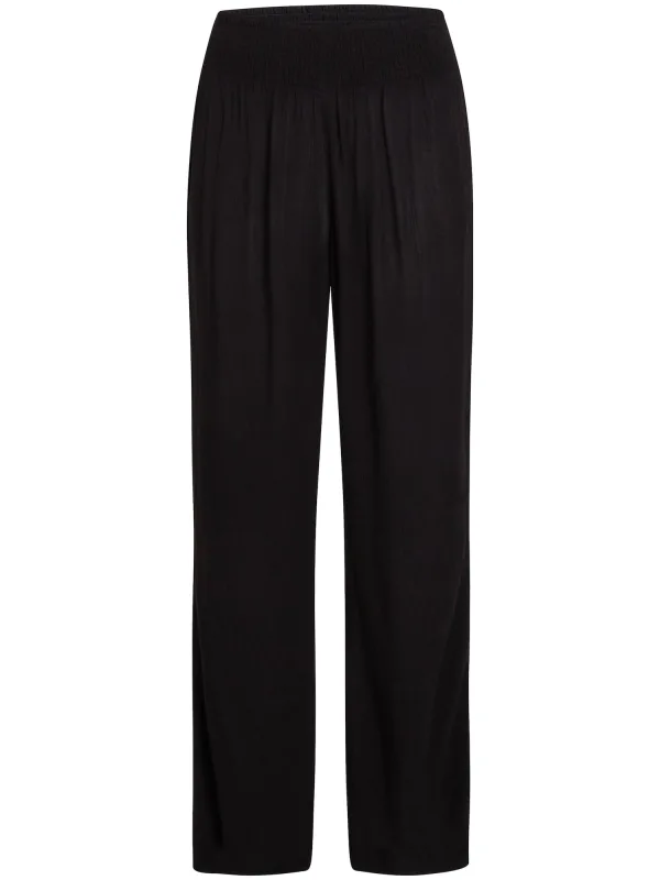 Voor warme dagen en relaxte momenten is deze zwarte wide leg broek voor dames van O'Neill een praktische basis in je garderobe. De lange, zwierige pijpen vallen soepel om je benen en creëren een luchtig silhouet. De zachte stof van 100% viscose voelt prettig aan op de huid en beweegt makkelijk met je mee, of je nu onderweg bent of gewoon een rustige dag hebt.Comfortabele pasvorm voor elke dag Gesmokte tailleband met elastiek voor een comfortabele, aansluitende fit rond je middel Wide leg model met lange pijpen voor een losse, luchtige uitstraling Gemaakt van 100% viscose, een soepele stof die zacht aanvoelt Regular waist, waardoor de broek prettig op de heupen valt Effen zwarte kleur, makkelijk te combineren met tops en T-shirts Ontworpen als daily item, ideaal voor het voorjaar en warme dagen Wasbaar op 30 graden, praktisch in het onderhoudZo draag je deze luchtige broekDoor de elastische taille trek je de broek snel aan en uit. Combineer met een eenvoudig T-shirt en sneakers voor een casual look of met een top en sandalen als je net iets meer aangekleed wilt gaan. De effen kleur maakt stylen heel eenvoudig.O'Neill als vertrouwde keuzeO'Neill heeft zijn roots in surf en beachwear en staat bekend om comfortabele kleding met een relaxte uitstraling. De focus ligt op draagbare ontwerpen die goed aansluiten bij een actieve, ontspannen levensstijl. Met deze broek kies je voor een merk dat ervaring heeft met kleding voor zonnige dagen.Een zwarte broek waar je de hele lente en zomer plezier van hebt.