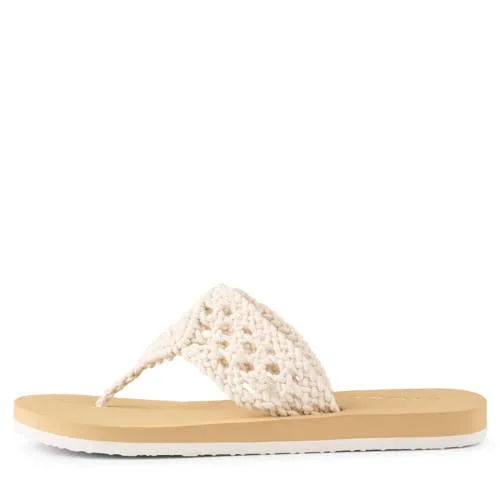 Stap zorgeloos van zand naar stoep met deze O'Neill dames teenslippers in ecru. De Ditsy slippers combineren een comfortabel voetbed met een subtiel gevlochten band van textiel. De zachte ecru kleur is makkelijk te combineren met je favoriete zomerjurk, short of jumpsuit, zodat je ze het hele seizoen door blijft dragen.Lichte slipper voor elke zomerdag Teenslippermodel met textiele band die soepel om je voet sluit Comfortabel voetbed van 100% ethyleenvinylacetaat voor een zachte ondersteuning Rubberen buitenzool voor stevige grip op natte en droge ondergrond Laag hakje van 0 - 2,5 cm en platte zool voor een ontspannen loopgevoel Normale leest, geschikt voor de meeste voetvormen Effen ecru kleur die rust geeft in je zomeroutfitVan boulevard tot strandtentDeze slippers zijn gemaakt voor dagelijks gebruik in de zomer. Ideaal voor stranddagen, een middag in de stad of een ontspannen wandeling over de boulevard. Het lichte ontwerp stop je gemakkelijk in je strandtas, zodat je altijd een fijn paar bij je hebt.O'Neill met roots in surf en strandO'Neill begon in Californië als surfmerk en heeft jarenlange ervaring met kleding en schoeisel voor het strandleven. Die achtergrond zie je terug in praktische details, lichte materialen en ontwerpen die passen bij warme dagen. Met deze teenslippers haal je die ontspannen surfstijl naar je dagelijkse garderobe.Een luchtige keuze voor zonnige dagen, van de eerste stranddag tot de laatste warme avond.
