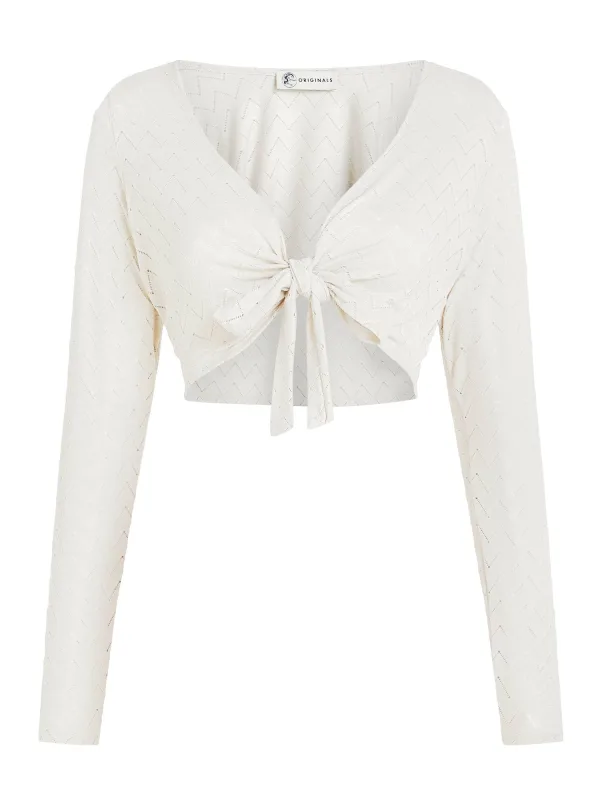 Design: Om te knopen/binden; Materiaal: Knitwear; Halstype: V-hals; Motief: Effen; Details: Mesh; Extra's: Voelt zacht aan; Pasvorm: Slanke pasvorm; Armlengte: Lange mouw; Lengte: Korte pasvorm