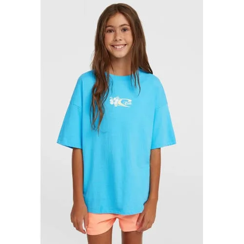 Klaar voor zonnige dagen met het O'Neill meisjes T-shirt met backprint. Dit blauwe T-shirt is een praktische basic voor elke dag, met een speelse surfprint op waterbasis aan zowel de voorkant als de achterkant. De rechtvallende, los aanvoelende pasvorm en de korte lengte geven een luchtig gevoel, geschikt voor zomerse avonturen, naar school of een middag aan het water.Details die het verschil maken Gemaakt van 100% katoen, voelt zacht aan op de huid en is prettig op warme dagen Vrolijke surfprint op waterbasis aan voor- en achterkant voor een zomerse uitstraling Korte mouwen met rechte mouwinzet voor een relaxte look Ronde hals die comfortabel aansluit zonder te strak te zitten Naar voren geplaatste schoudernaden zorgen voor een casual pasvorm en extra draagcomfort Korte lengte, leuk op een short, jeans of rok Geschikt voor schoolkind en tiener, in de dagelijkse collectie Wasbaar op 40 graden, dus makkelijk schoon te houden na buiten spelenIdeaal voor zonnige dagen en vrije tijdDit T-shirt combineer je eenvoudig met een korte denim short, sportieve leggings of een luchtige rok. Geschikt voor vakantie, strand, een dagje stad of om lekker in te ontspannen. De print op de rug valt extra op als er een staart of knot wordt gedragen.O'Neill: geïnspireerd door surf en strandO'Neill begon als surfmerk en vertaalt die lifestyle nog steeds naar comfortabele kleding voor elke dag. De ontwerpen zijn praktisch, met aandacht voor draagcomfort en een ontspannen uitstraling. Zo combineert O'Neill een sportieve look met betrouwbare kwaliteit, waarin kinderen vrij kunnen bewegen en spelen.Een zomerse basic die keer op keer uit de kast kan worden gepakt.