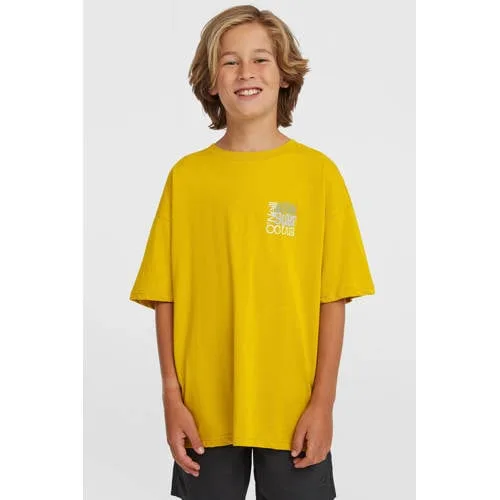 Voor elke dag en elke schooldag is dit jongens T-shirt met backprint van O'Neill een praktische basic met een stoere uitstraling. Het losvallende model in mosterdgeel voelt comfortabel aan door het halfzware katoen en valt net wat ruimer dankzij de oversized pasvorm. De klassieke ronde hals met ribzoom en de naar voren geplaatste schoudernaden zorgen voor een relaxte look en meer draaggemak. De print op waterbasis op zowel de borst als de rug geeft het shirt een typische O'Neill surfstijl.Details die het verschil maken Gemaakt van 100% katoen, zacht en prettig om de hele dag te dragen Oversized pasvorm voor een relaxte, losvallende look Korte mouwen en korte lengte, ideaal voor de dagelijkse outfits Ronde hals met geribde afwerking voor een vormvaste halslijn Grote print op waterbasis op borst en rug voor extra stijl Geschikt voor schoolkind en tiener, 1 T-shirt per verpakking Wasbaar op 40 graden, makkelijk in het onderhoudMakkelijk te combineren in zijn dagelijkse outfitsDit T-shirt past eenvoudig bij zijn favoriete jeans, korte broek of een comfortabele jogger. Ideaal voor school, buitenspelen of een dagje strand, door de soepele stof blijft het prettig zitten tijdens bewegen en sporten.O'Neill voor jonge surfers en avonturiersO'Neill staat bekend om kleding met een knipoog naar de surfwereld, gemaakt voor een actieve levensstijl. Met dit T-shirt haalt je kind een betrouwbaar item in huis dat comfort combineert met een sportieve uitstraling.Een praktische keuze voor elke dag waarop hij zich vrij wil bewegen en er toch verzorgd uit wil zien.