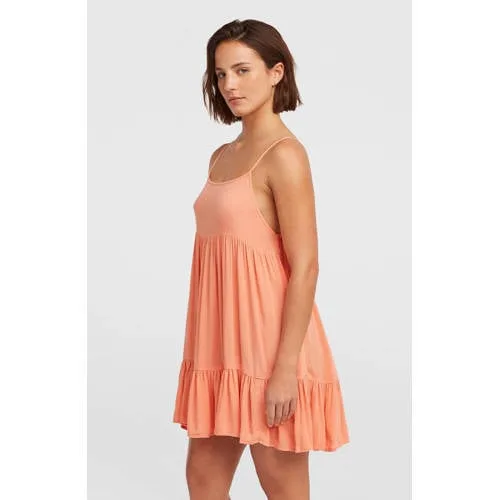 De oranje O'Neill jurk Rilee is gemaakt voor zonnige dagen aan zee, in de stad of in de tuin. Dit luchtige zomerjurkje heeft een kort A-lijnmodel dat soepel om het lichaam valt en veel bewegingsvrijheid geeft. De openvallende hals en de fijne spaghettibandjes zorgen voor een lichte, zomerse uitstraling. De zachte stof van 100% viscose voelt comfortabel aan op de huid en draagt prettig bij warm weer.Luchtig zomerjurkje met doordachte details Kort A-lijnmodel dat losjes valt en niet knelt Verstelbare schouderbandjes voor een persoonlijke pasvorm Openvallende hals die het bovenlijf subtiel accentueert Effen oranje kleur die goed combineert met sandalen en slippers Ruches zorgen voor een speelse, vrouwelijke afwerking Zonder sluiting, zodat het jurkje eenvoudig aan en uit te trekken is Gemaakt van 100% viscose voor een soepele, gladde touch Wasbaar op 30 graden, geschikt voor regelmatig dragenVoor stranddagen, citytrips en thuisDeze korte zomerjurk past goed over je bikini op het strand, maar ook met sneakers of slippers tijdens een dagje stad. Door het effen design is het jurkje makkelijk te stylen met een spijkerjack of een lichte cardigan als het afkoelt in de avond.O'Neill: geïnspireerd op zon en zeeO'Neill heeft zijn roots in de surfwereld en dat zie je terug in de casual, comfortabele stijl van dit jurkje. Het merk ontwerpt kleding die prettig draagt bij hoger tempo en hogere temperaturen, met aandacht voor pasvorm en bewegingsvrijheid. Zo kies je met de Rilee voor een zomerse jurk die je veel draagt, seizoen na seizoen.Een toegankelijke zomerjurk voor dagen waarop alles licht en ontspannen mag aanvoelen.