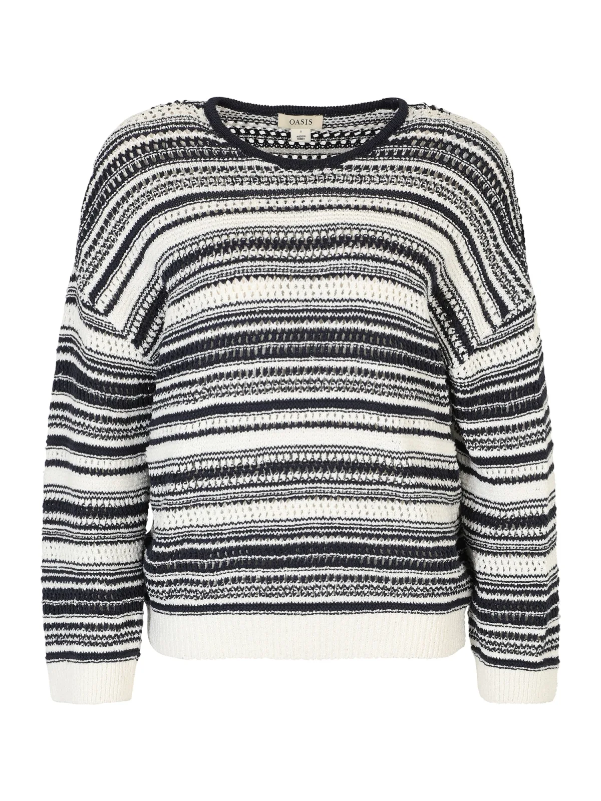 Design: Geribbelde kraag, Rechte zoom, Geribd ceintuurtje, Overcut schouder; Materiaal: Katoen; Halstype: Ronde hals; Motief: Gestreept; Details: Mesh; Extra's: Patroon gebreid, All-over patroon, Fully fashioned, Voelt zacht aan; Pasvorm: Losse pasvorm; Armlengte: Lange mouw; Lengte: Normale lengte