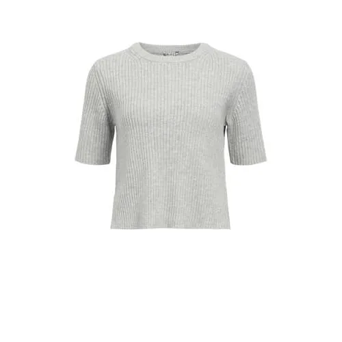 OBJECT asymmetrische top trui lichtgrijs rib gebreid Prijzen