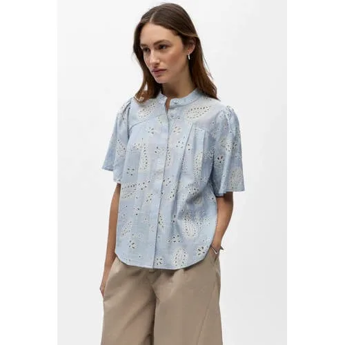 Blouse type: Klassieke blouse; Design: Gevoerde zoom/rand, Pofmouwen, Ronde zoom, Verborgen knop placket; Type sluiting: Knoopsluiting; Materiaal: Viscose; Motief: Paisley; Kraag: Opstaande kraag; Details: Borduursels, Mesh; Extra's: All-over patroon, Label borduurwerk, Voelt zacht aan, Huidvriendelijk materiaal; Pasvorm: Losse pasvorm; Armlengte: Halve mouw; Lengte: Normale lengte