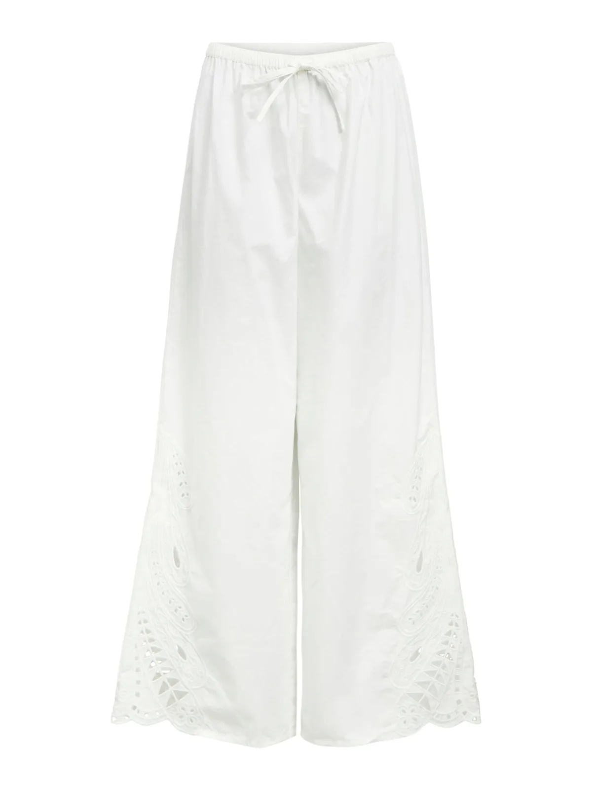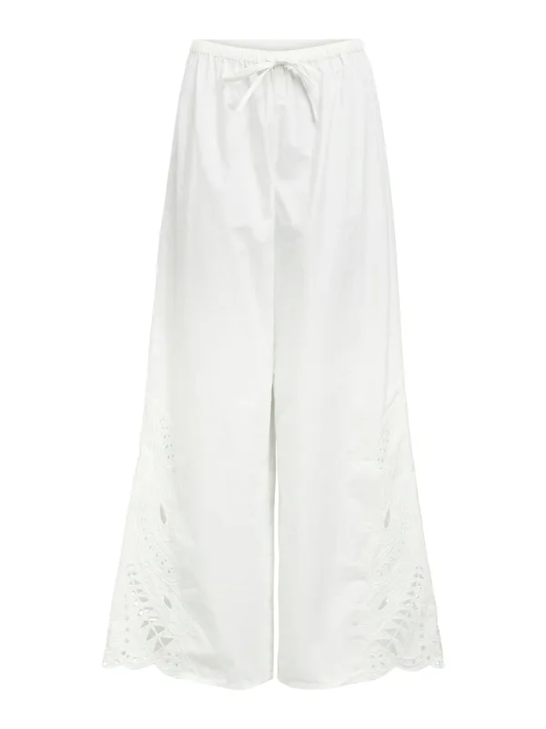 Design: Elastische taille/zoom, Tailleband; Materiaal: Katoen; Motief: Effen; Details: Borduursels, Gedrapeerd, Mesh; Extra's: Op staal naden, Voelt zacht aan; Lengte: Lang/maxi; Pasvorm: Wide leg; Taillehoogte: Mid waist